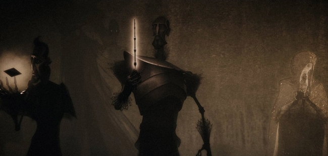 Karakterlerin tavırlarının baştan aşağı duruşlarıyla anlaşılması gerektiğinin bilincindeydik. Siluetler bizim belirli bir tiyatrallık sunmamızı sağladılar. Eller konuşmanın yerine geçiyordu, mesela Ölüm’ün elleri neredeyse yüzü kadar bir şeyleri dışa vuruyordu.’